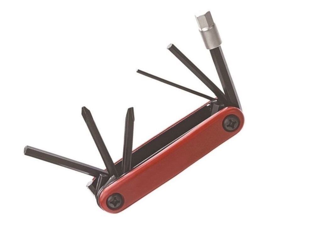 Общее количество инструментов: 7 - Шестигранники: 2/4/5/6/8 мм - Отвертки: крестообразная, плоская - Материал инструмента: закаленная сталь, пластик