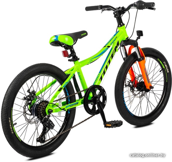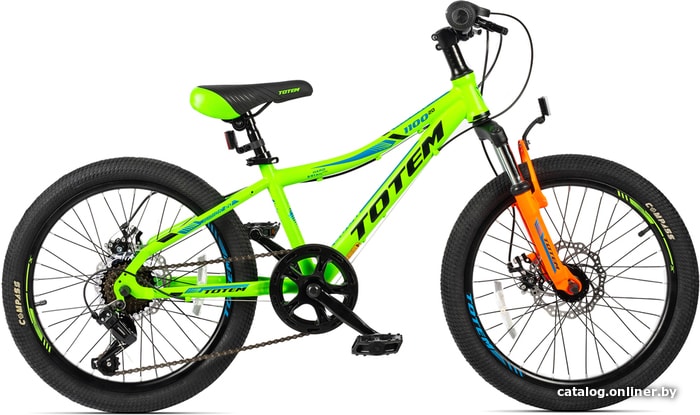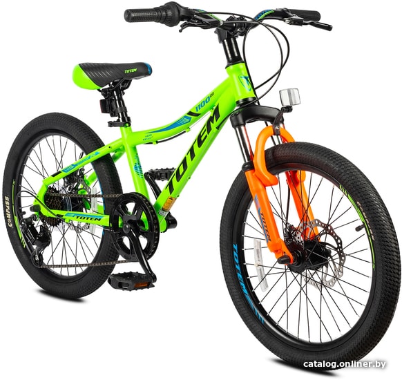 Велосипед TOTEM 1100D 20″ – это настоящий горный велосипед для начинающих райдеров 5-9 лет. Надёжный и безопасный подростковый велосипед на лёгкой раме, с мощными дисковыми механическими тормозами, мягкой амортизационной вилкой и оборудованием SHIMANO начального уровня. Велосипед имеет потрясающий внешний вид и небольшой вес. Подходит для поездок по городу и пересечённой местности. Рекомендуемый рост ребёнка 115-140 см.