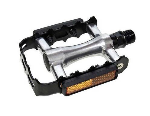 Материал изготовления: алюминий Размер педали: 99 х 77 мм. Резьба оси: 9/16" Подшипник: шариковый, насыпной В комплекте: светоотражатели Вес пары: 277 г Цвет: чёрный
