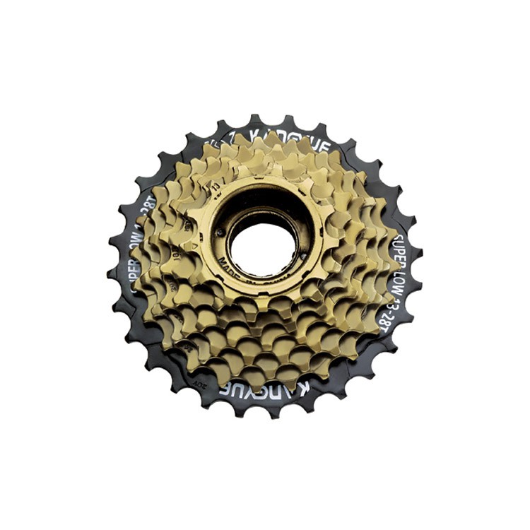 Трещотка KFW-774 SUPERWIN на 7 скоростей, 14-16-18-20-22-24-28 зуба, стальная, чёрно-коричневая: - Трещотка предназначена для использования с 7-ми скоростными системами. - Имеет 7 зубцовых венцов с различными зубчатыми профилями для плавного переключения передач. - Изготовлена из прочной стальной конструкции, обеспечивающей надежность и долговечность. - Цвет трещотки - чёрно-коричневый.